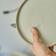 "Je réalise de la vaisselle pour le quotidien, mais également des pièces décoratives comme des vases. Mes créations sont en grès, dans un style épuré et féminin. Je recherche, de plus en plus, l’authenticité avec la volonté de laisser un peu de moi dans chaque pièce ; des formes imparfaites, l’émail posé de façon aléatoire, etc.